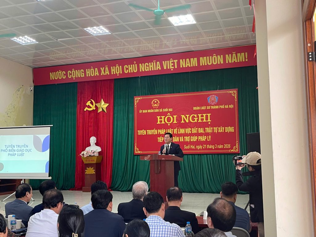 Ngày 21/03/2026, Đoàn Luật sư thành phố Hà Nội đã tổ chức thành công chương trình Phổ biến Giáo dục Pháp luật (GDPL) và Trợ giúp Pháp lý (TGPL) tại xã Suối Hai. Đây là hoạt động trọng tâm nhằm hỗ trợ pháp lý cho người dân, đặc biệt là các đối tượng yếu thế, gia đình chính sách và người có hoàn cảnh khó khăn trên địa bàn.